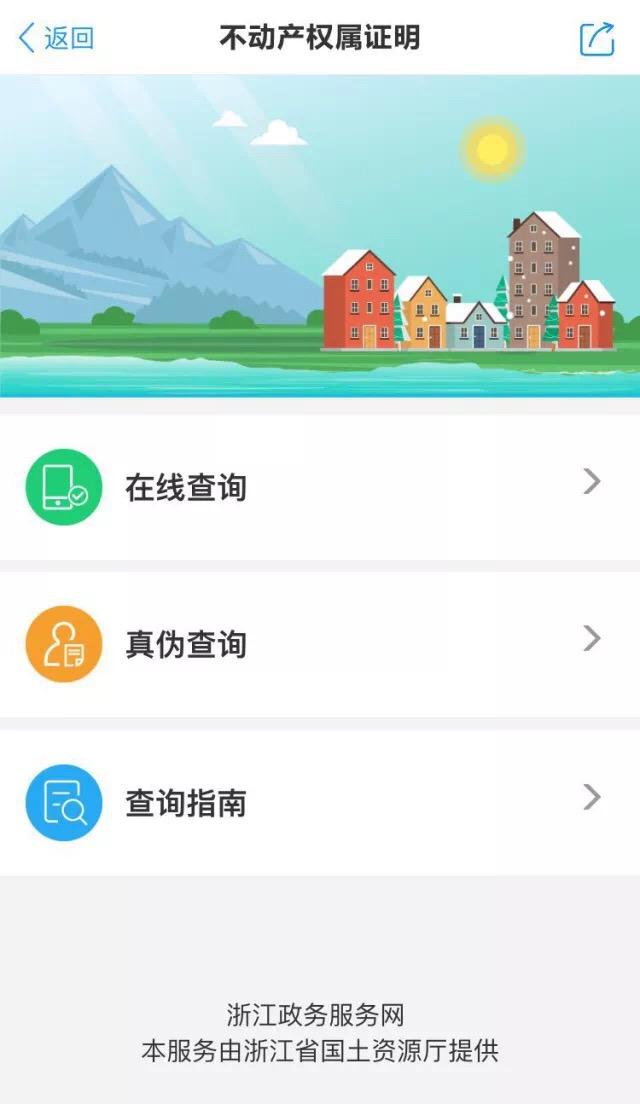 @浙江人,浙江政务服务网的不动产权属证明服务范围升级!目前,不动产权属证明实现全省100个市、县(市、区)在线实时查询。 这标志着:以后,只要是在浙江省范围内有不动产的社会公众,如果需要办理无房证明,子女读书,户口迁移,低保、残保和困难家庭,本地廉租房,保障性住房,拆迁,公积金提取,人才补贴和社区停车等与不动产登记相关业务证明的,只需登录浙江政务服务网网页版(http://www.zjzwfw.gov.cn/)或者浙江政务服务APP,动动手指就能轻松体验不动产权属证明在线申请、查询、下载和打印。 2018年1月26日,国土资源部第1次部务会议审议通过《不动产登记资料查询暂行办法》(以下简称《办法》),《办法》自公布之日起施行。《办法》的出台进一步规范了不动产登记资料查询活动,加强了不动产登记资料管理、保护和利用,维护了不动产交易安全,保护了不动产权利人的合法权益。 子女读书、银行贷款、遗失补证、信息查询、无房证明、调查取证、社区停车、人才补贴、迁拆、户口迁移、公积金提取、房产抵押、本地廉租房、保障性住房……在很多场景下,不论有房没房,你都需要用到这张不动产权属证明。根据相关部门统计,浙江每年开具“不动产权属证明”的量都在200万件以上。 以前,要想开具“不动产权属证明”,市民们需要前往所在地国土资源局的不动产登记窗口,排队办理。 现在,个人的“不动产权属证明”只要登录浙江政务服务网,就可以在线申请查询办理。 截止目前,平台共实现不动产权属查询33712次,其中19453次来自信息查询。 其中,95.5%的查询来源于手机等移动端,4.5%的查询来源于网页版。 只要登录浙江政务服务网网页版(http://www.zjzwfw.gov.cn/)或者浙江政务服务APP,均可完成全省不动产登记权属证明申请。 具体步骤 APP版入口 首先,扫码下载浙江政务服务APP,注册账号并通过高级实名认证。(如何认证点这里) 1.打开浙江政务服务APP,点击首页“不动产权属证明”即可进入。 2.目前,该应用包括“在线查询”、“真伪查询”、“查询指南”。点击“在线查询”即可开始办理。